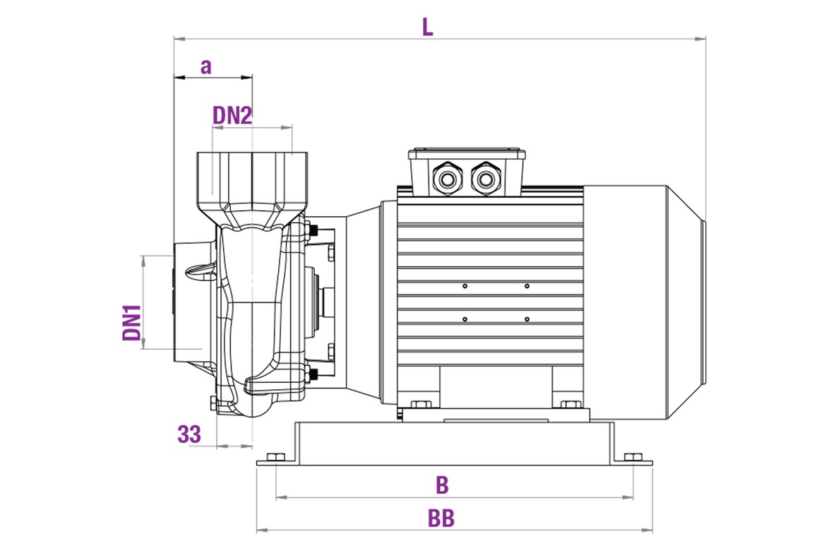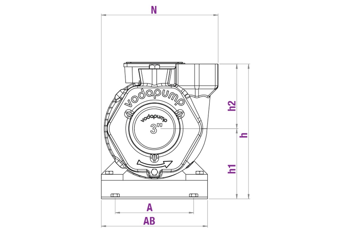 | Monophasig | Dreiphasig | Hp | Kw | Saug DN1 | Pumpvorgang DN2 | L | N | h1 | h2 | h | a | w | A | AB | B | BB | 1~ | 3~ |