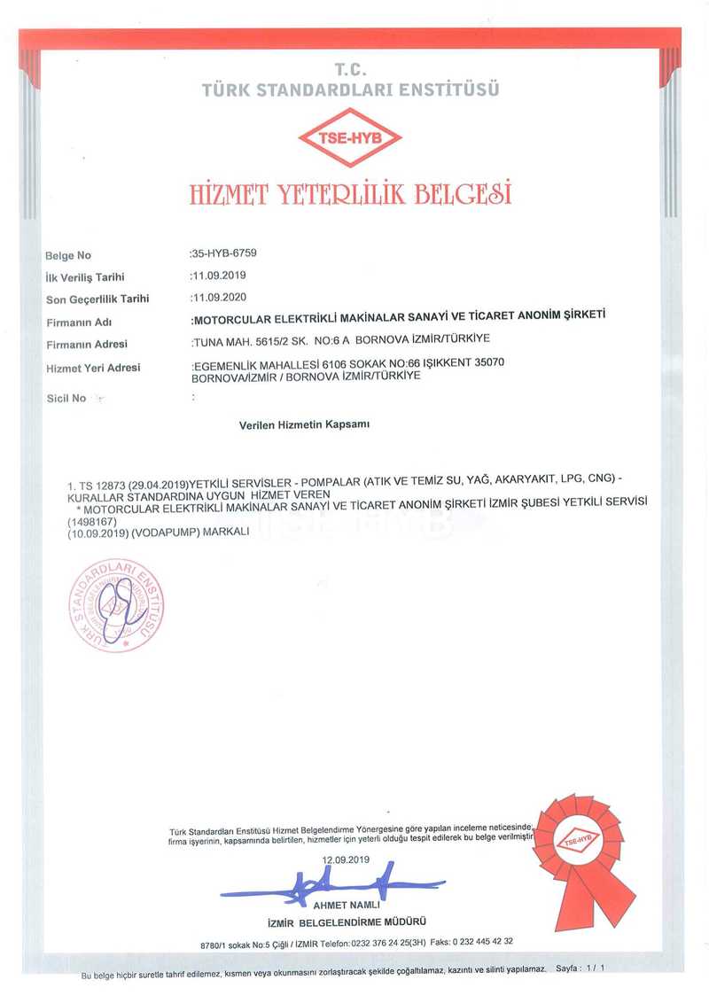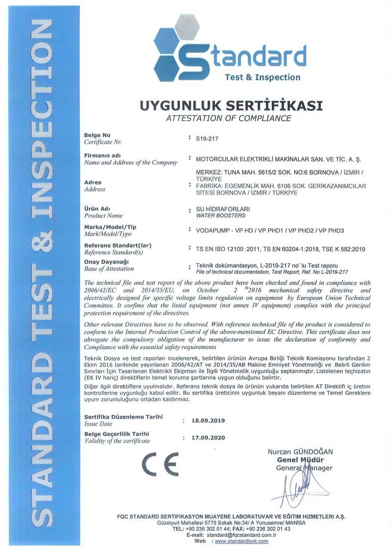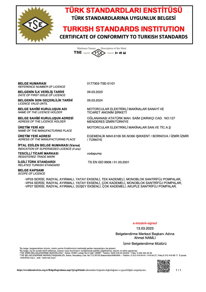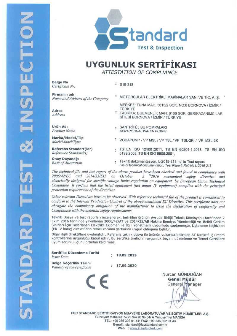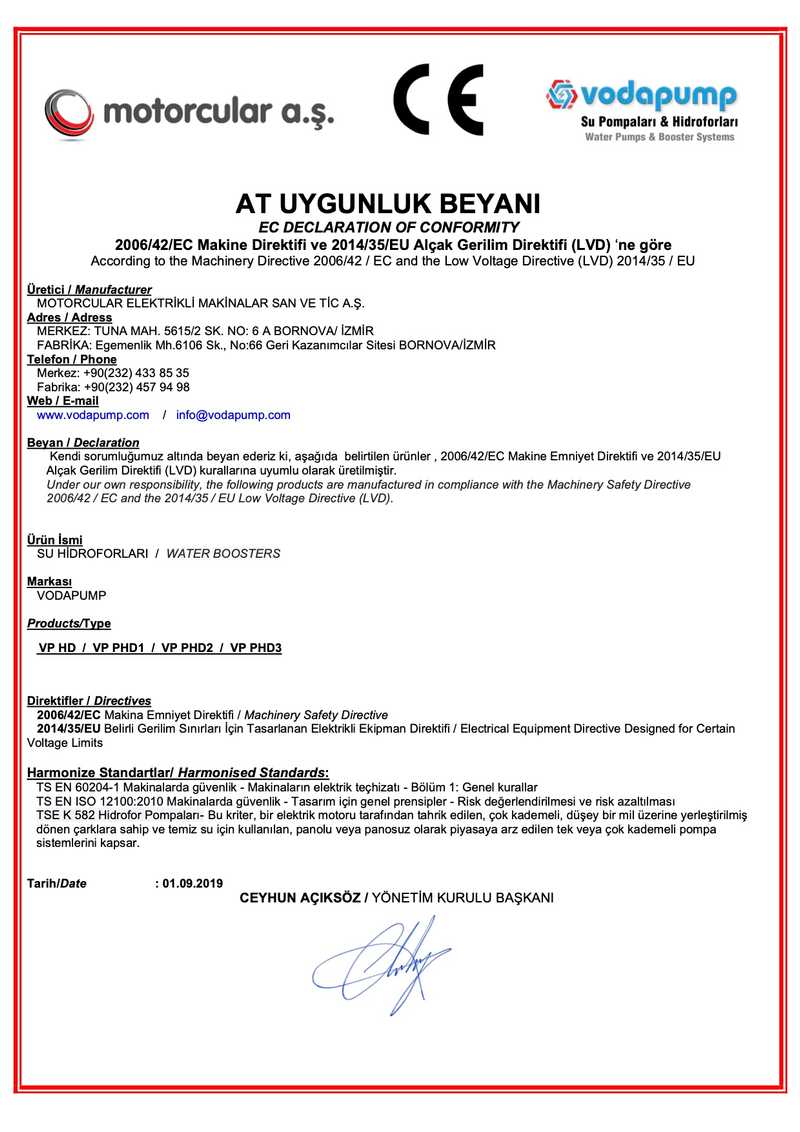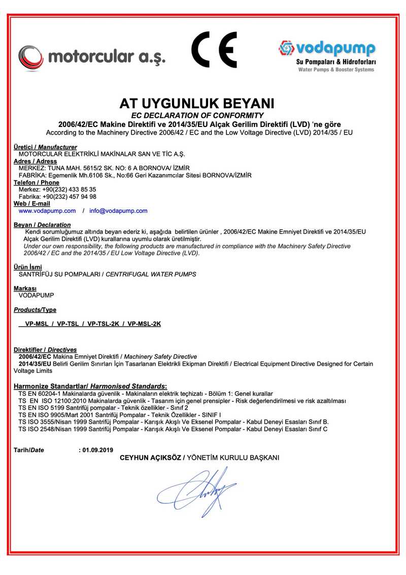 Bescheinigung über die Einhaltung Pumpen